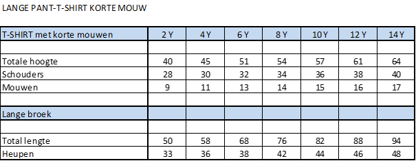 Maattabel :